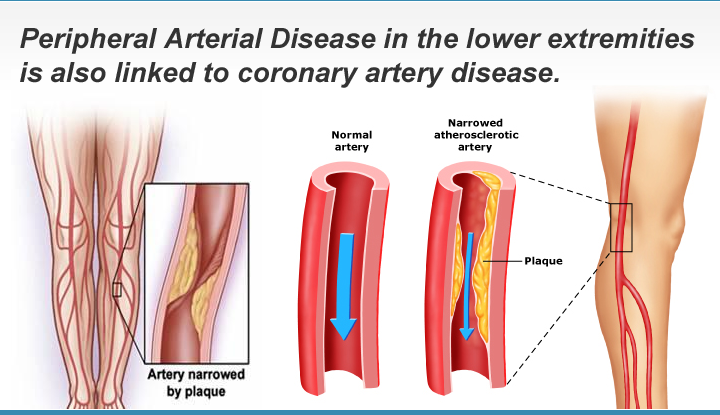 Peripheral Arterial Disease in the lower extremities is also linked to coronary artery disease.